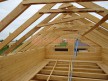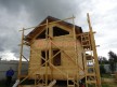 Проект №87 представляет собой аккуратный небольшой дом с мансардой 5х7,5 из клееного бруса без отделки. Несмотря на то, что клееный брус не требует усадки и позволяет строить дома под ключ, клиенты решили в этом году построить сруб под крышу, законсервировать его и приступить к отделке в следующем сезоне.
