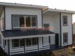 Согласитесь, необычное архитектурное решение с односкатной крышей, галереей окон и изящной террасой обращает на себя внимание. А благодаря простым архитектурным формам планировка этого коттеджа из бруса очень удобная — все жилые комнаты получились очень просторными и светлыми. Второй этаж — полноценный, без недостатков мансардных проектов в виде низких потолков.