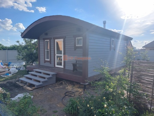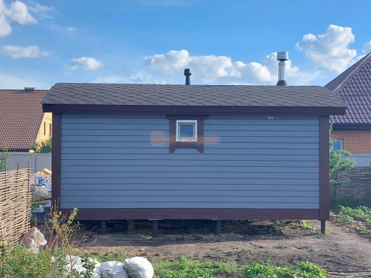 Такая одноэтажная баня 4х6 может быть построена из бруса. Ориентировочный срок строительства 15 дней.