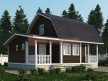 На первом этаже, помимо банных помещений (парная, мойка) расположены просторная гостиная, небольшая кухня, санузел. В мансарде — две изолированные спальни и холл с лестницей.