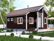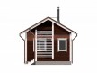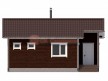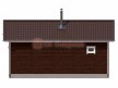 Размер этой бани 5х9, общая площадь составляет 45 кв.м. Модель относится к категории средних размеров. Внешний вид соответсвует современным тенденциям: покрашенный в темный цвет брус с сияющей белоснежной отделкой. Аккуратная двускатная крыша и небольшое крыльцо с тамбуром.