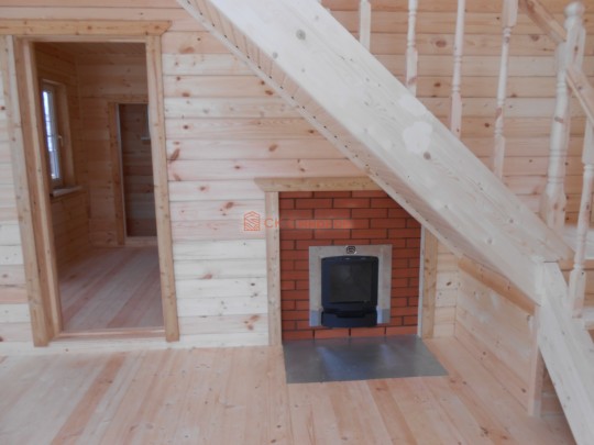 На первом этаже есть парная, душ, санузел, общая комната, а на втором этаже расположена спальня.