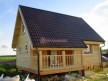 На фотографиях представлена баня со вторым светом 6х8 с террасой (плюс ещё один метр). Её нельзя назвать мансардной, так как второй этаж занимает лишь половину площади — вторая осталась незастроенной. Этот приём как раз и называется вторым светом. В итоге помещение первого этажа стало высокими и визуально более просторным.
