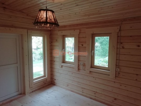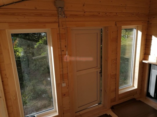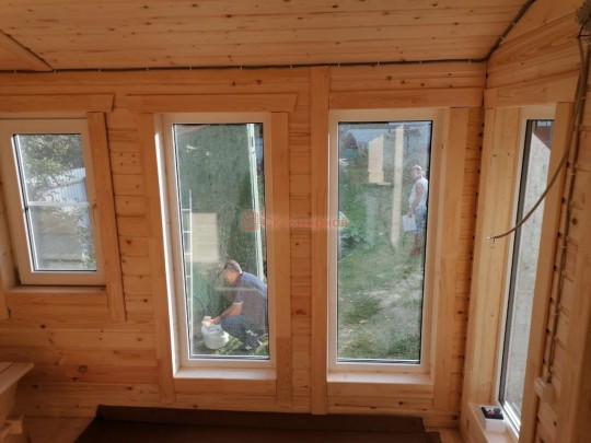 Окна мы устанавливаем настоящие деревянные стеклопакеты с фурнитурой как на пластиковых окнах, дерево используется клееное, повторюсь, не имитация деревянных стеклопакетов, а именно качественные окна.