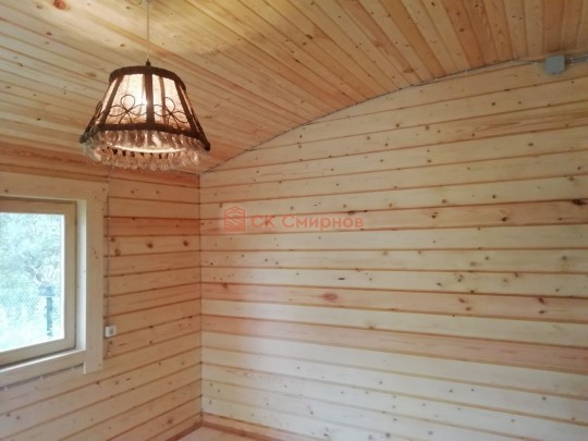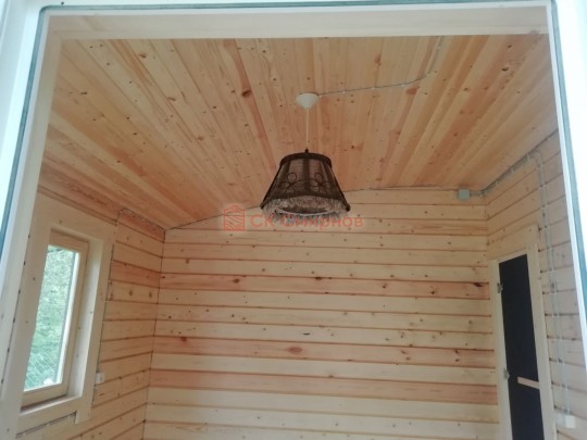Потолки, стены вансардного каркасного этажа ( если он есть ) обшиваются сухой вагонкой.