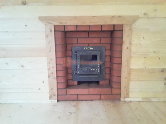 Строительство доступно на любом участке в в области. Консультации менеджера в в городе по бесплатному телефону 8 (962) 681-14-47.На фото можно увидеть печь с выносной топкой фирмы Гроза — клиент покупал её самостоятельно, однако установкой занималась наша бригада. Аккуратно сложенный кирпичный экран вокруг печи — тоже наша работа.