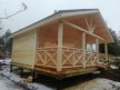 На террасе при условии что она есть делаем перила из строганной доски со всех сторон, столбы террасные также строганные, а не обрезки профилированного бруса с шипом и пазом. Домкратики на столбах для дальнейшей регулировки. Балясины будут сделаны аккуратно. Обратите внимание что в дешёвых случаях это может быть и будет просто вагонка прибирая к неотесанной доске снаружи и столбы будут не квадратные а просто профилированный брус как на видео.