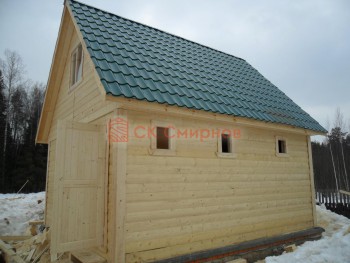 В основание сруба кладётся усиленная двойная обвязка, обработанная антисептическим составом.