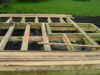 Лаги, обвязку и черновой пол обрабатываем раствором био огне защитой ( зимой оговариваются отдельные условия ), в основном красный цвет, но может быть и бесцветная обработка.