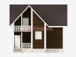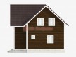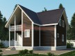 Среди других проектов этот коттедж выделяется за счет красивого фронтона с изящными балконом и террасой. Крыша выглядит многощипцовой.