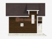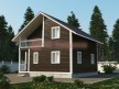 Классическая двускатная крыша украшена небольшим выступом, который функционально скрывает в себе лестничный пролет в мансарде. Базовая планировка первого этажа включает большую гостиную, кухню, санузел, холл с лестницей на верхний этаж. Мансарда разделена на две изолированные спальни, санузел.