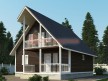Коттедж выглядит по-современному стильно. Классическая двускатная крыша имеет выступ со стороны фасада, что позволяет разместить под ним балкон и террасу без уменьшения жилой площади.