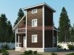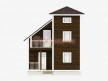 Пожалуй, это один из самых необычных проектов дачных домиков из бруса на нашем сайте. Дом как-будто состоимт из двух частей: полноценной двухэтажной и мансардной пристройки. В мансарде расположен балкон, под ним — крыльцо с небольшой террасой.