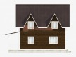 На первом этаже коттеджа находятся кухня и гостиная, санузел, котельная, холл с лестницей на верхний этаж. Спальни расположены на втором этаже. Планировку можно изменить по желанию заказчика.