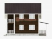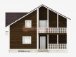 На фото коттедж выглядит большим, внушительным. Так оно и есть: размеры дома 9х10, а площадь составляет 165 кв.м. Под выступающей крышей фасада прячутся балкон и терраса. С боковой стороны на уровне крыши — два выступа в виде кукушки.