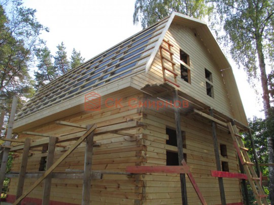 Все фото процесса строительства этого дома вы можете посмотреть в галерее. Для строительства был выбран самый на наш взгляд удачный брус — сухой профилированный с компенсационными пропилами. Почему именно он, смотрите в видео: