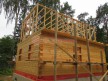 Из профилированного клееного бруса 9х14см, 14х14 см или 14х19 см. Сборка сруба в теплый угол на нагеля или гвозди 200 мм со сверлением отверстия в верхнем брусе (в зависимости от вида бруса).