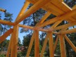 Из 9х14см, 14х14 см или 14х19 см. Сборка сруба в теплый угол на нагеля или гвозди 200 мм со сверлением отверстия в верхнем брусе (в зависимости от вида бруса).