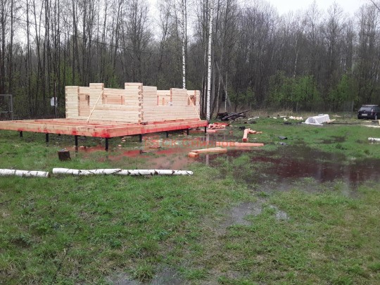 Строили из клееного бруса 140х140 с улучшенным финским профилем сразу с отделкой под ключ. Также можно заказать строительство из сухого бруса камерной сушки, в том числе с компенсационными пропилами. По цене это будет немного дешевле. Из бруса естественной влажности тоже строим, но только под усадку. В качестве фундамента оптимальным будет свайно-винтовой.