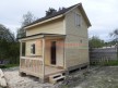 Из профилированного сухого бруса 9х14см, 14х14 см или 14х19 см. Сборка сруба в теплый угол на нагеля или гвозди 200 мм со сверлением отверстия в верхнем брусе (в зависимости от вида бруса).