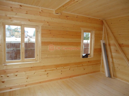 Потолки, стены вансардного каркасного этажа ( если он есть ) обшиваются сухой вагонкой.