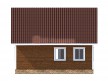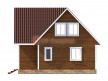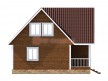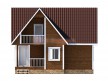 Проект дома из бруса 8х8 для всей семьи представляет собой смесь классического стиля, оптимально совмещенного со стилем модерн. У него острая мансардная двускатная крыша, два фронтона, а фасад дома – очень привлекательный за счет четкого проведения цветовых границ между темно-бордовой кровлей крыши, кофейным оттенком брусьев и белым оттенком отделочных деталей, включая наличники на окнах и дверь.