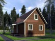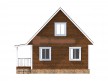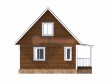 На первом этаже располагается небольшая прихожая, гостиная и кухня, а второй этаж занимает просторная комната с большими окнами. Полутораэтажный дом из бруса с оригинальным крыльцом является одним из самых популярных проектов компании.