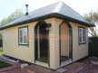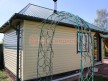 Изюминка дизайна в открытых арочных проемах, отделанных контрастными наличниками, вальмовой крыше, полноценной душевой кабине. Планировка на 24 кв.м. включает в себя просторный предбанник, совмещенный с комнатой отдыха, помещение с душевой и уютную парную с двухуровневыми пологами.