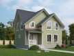 На фото представлен проект дачного дома №255 габаритами 7.5х8.5 метров и отличной планировкой общей площадью 124 квадратных метров. Можно выделить несколько особенностей проекта: эркер, туалет, ванная, санузел, панорамные окна. Коттедж полутораэтажный, может использоваться как зимний, для постоянного проживания, коттедж.
