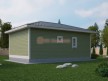 Когда участок небольшой, то экономия места выходит на первый план. Для таких случаев разработан проект современного одноэтажного дачного дома с баней под одной крышей. Размер 6 на 9 метров, при этом есть и санузел, и жилая комната, и банные помещения. Также нашлось местечко для небольшой террасы.