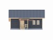 На фото представлен проект деревянного дома №297 габаритами 10х12.5 метров и отличной планировкой общей площадью 102 квадратных метров. Можно выделить несколько особенностей проекта: терраса, туалет, ванная, санузел, сауна. Это современный одноэтажный коттедж с отлично продуманной планировкой. Есть два входа на разные стороны, один из которых выходит на крытую террасу. Кухня объединена с гостиной, 2 спальни изолированы друг от друга.